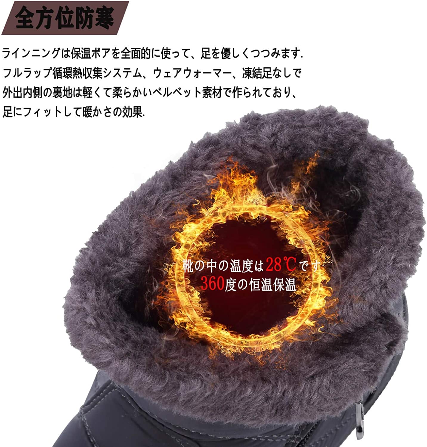 【 暖かいこと防寒靴】足全体が裏起毛に包まれてふかふかな履き心地と保温性あります。厚底で安定感抜群、歩きやすいのが嬉しいポイントで、雪道対応ソールのウインター機能を兼ね備えたショートブーツ。撥水加工仕様なので、雨の日にもご使用安心です。